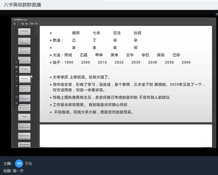 1、古人说:授子千金、不如教子一技。所以八字预测作为一种技术,可以说是终身受用的。即便年老,也不必没事搓搓麻将,可能年纪越老、经验越足越被人信任。