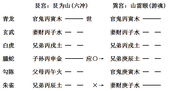 又如寅月丙申日,占官职升迁,得到艮卦,变为山雷颐卦∶